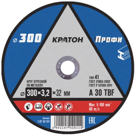 Диск отрезной по металлу 300*3,2*32 Кратон A30 TBF