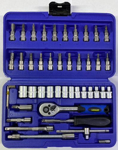 Набор головок и инструмента Левша 1/4" 46пр., пласт. кейс