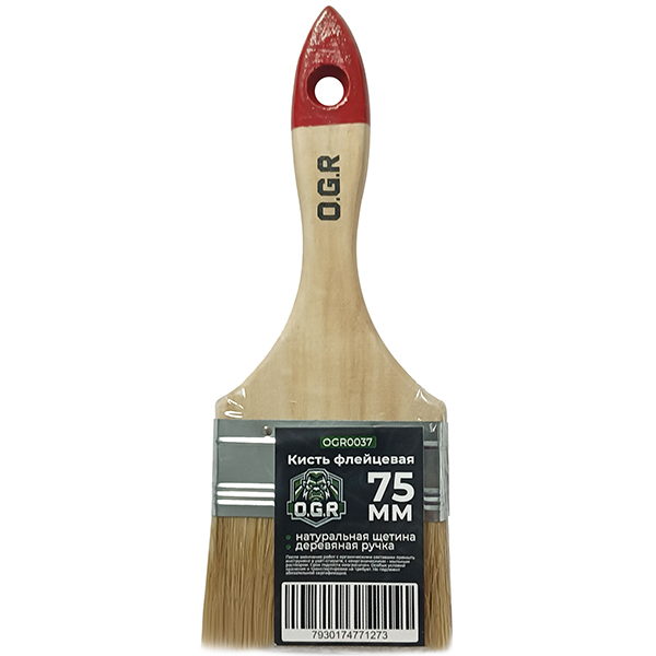 Кисть плоская 75мм OGR, деревянная ручка, натур. щетина