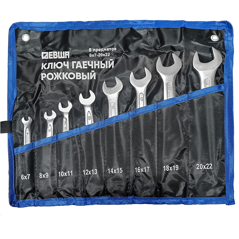 Набор ключей рожковых 6-22мм (8пр.) Левша, на полотне