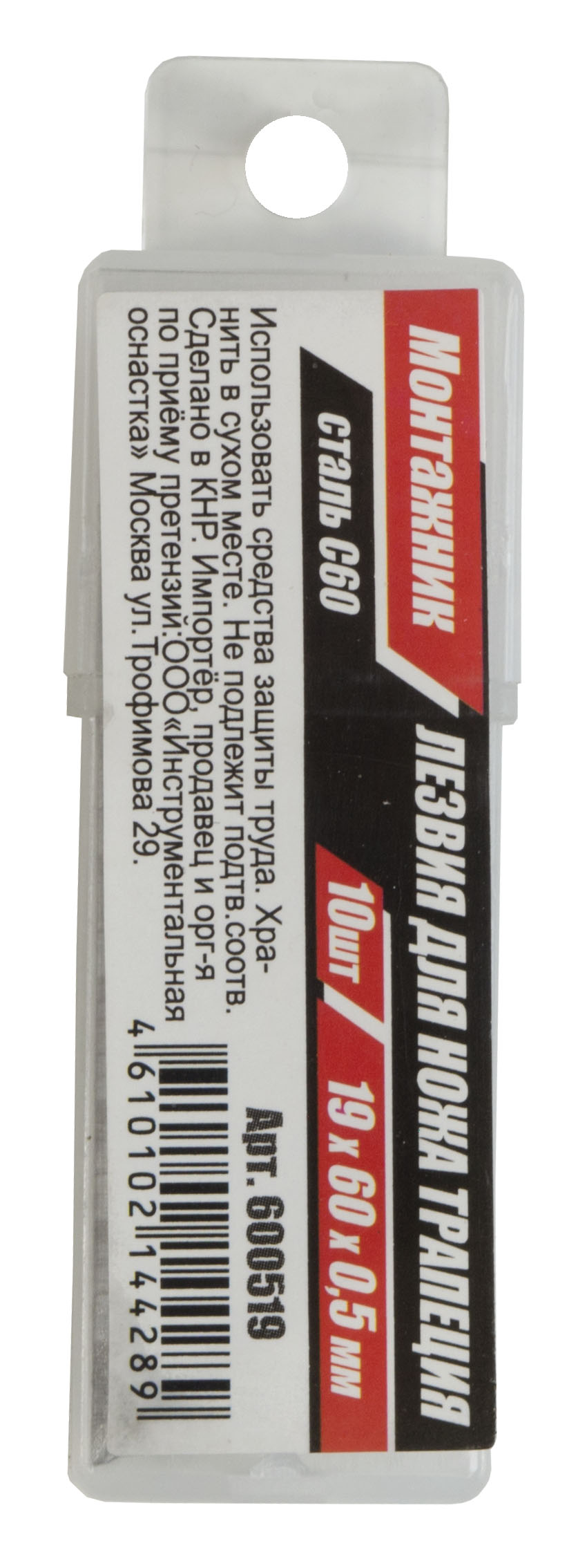 Лезвия для ножа трапеция 19*60*0.5мм Монтажник (10 лезвий/уп)