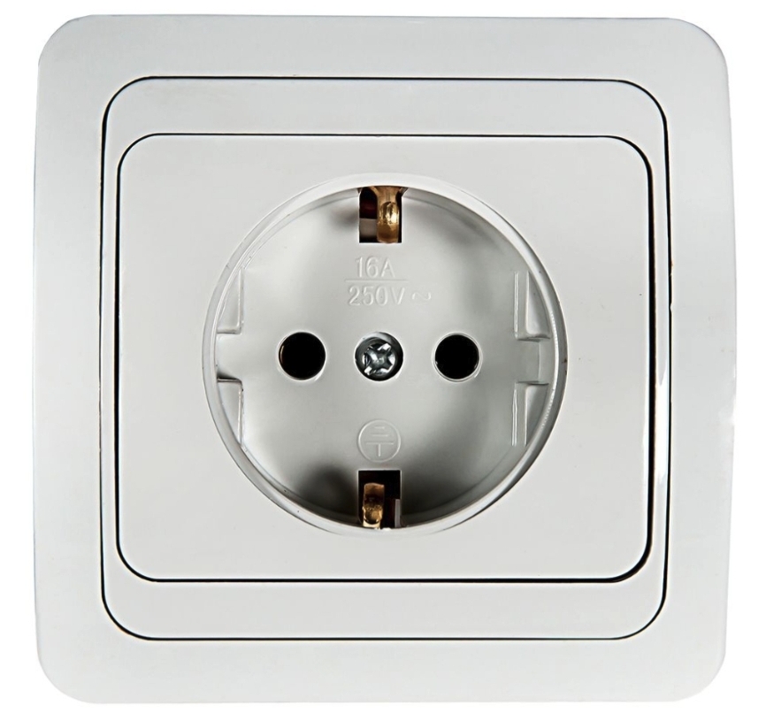 Розетка 1-местная, СУ, без заземления, 16A, белая Intro Plano 2P 16АХ-250В (1-201-01)