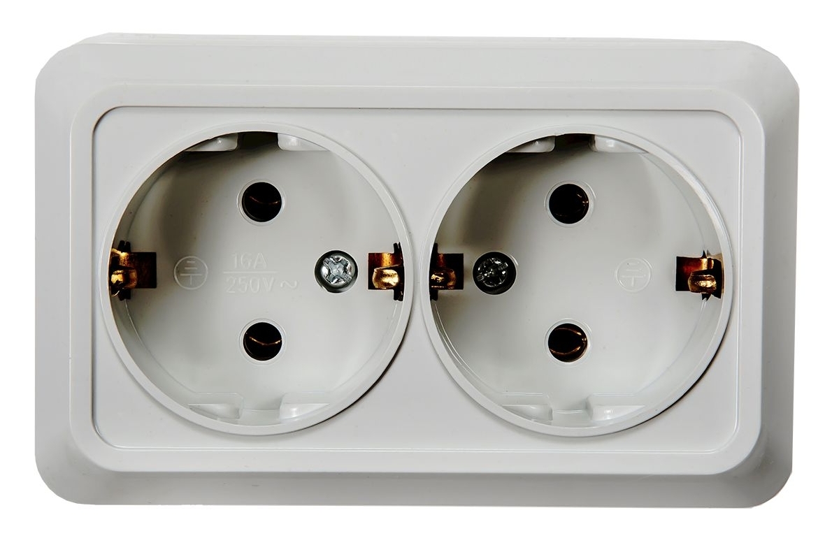 Розетка 2-местная, ОУ, с заземлением, 16A, белый IN HOME BOLLETO 7128-W