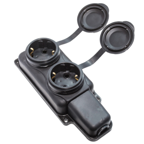 Розетка 2-местная, ОУ, с заземлением, 16A, IP44 с заглушкой, каучук, черная Амбидекстр