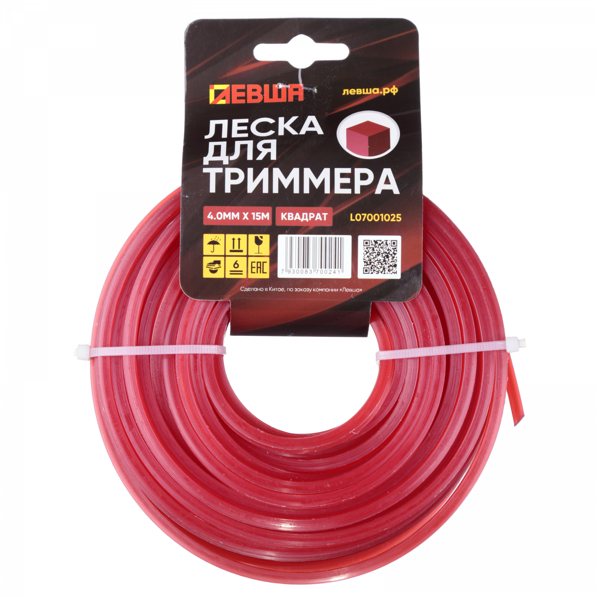 Леска для триммера 4.0мм*15м, квадрат ЛЕВША