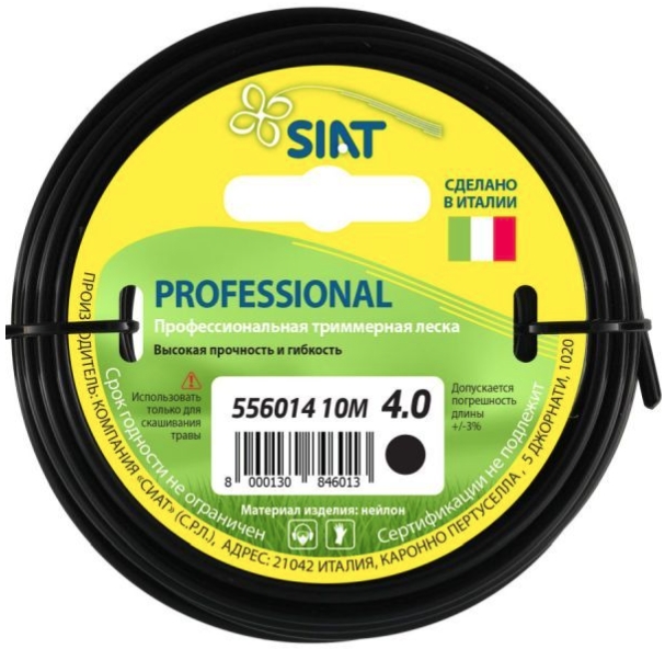 Леска для триммера 4.0мм*10м, круглая Siat PROFESSIONAL