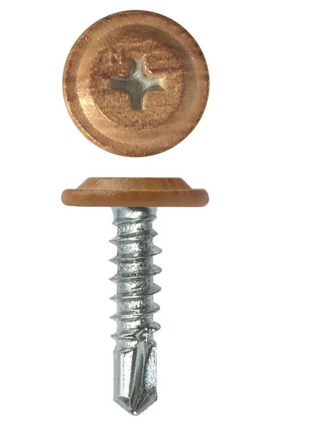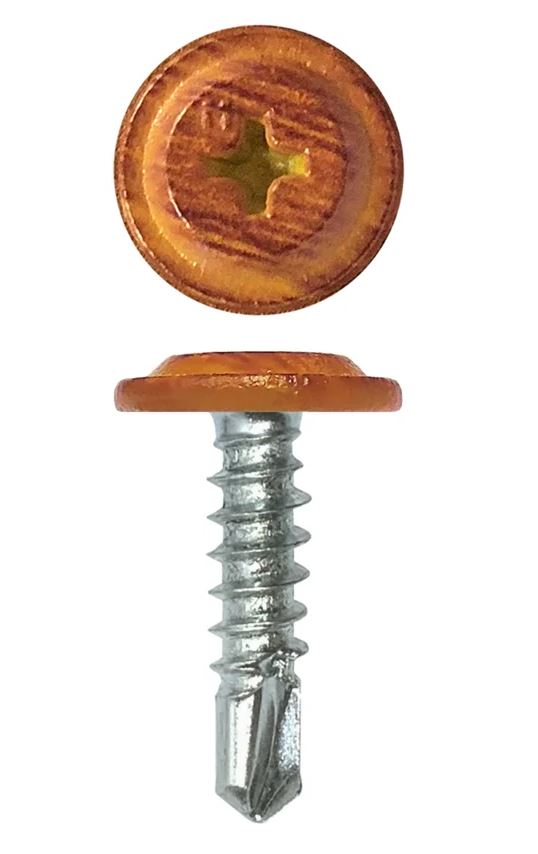 Саморез с прессшайбой со сверлом 4.2*16мм - RAL Темный Дуб, "Printech"