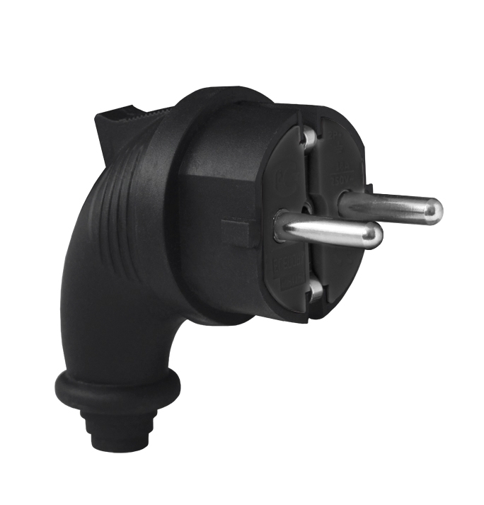 Вилка угловая, с заземлением, 16А, (каучук) черная, Universal 1241