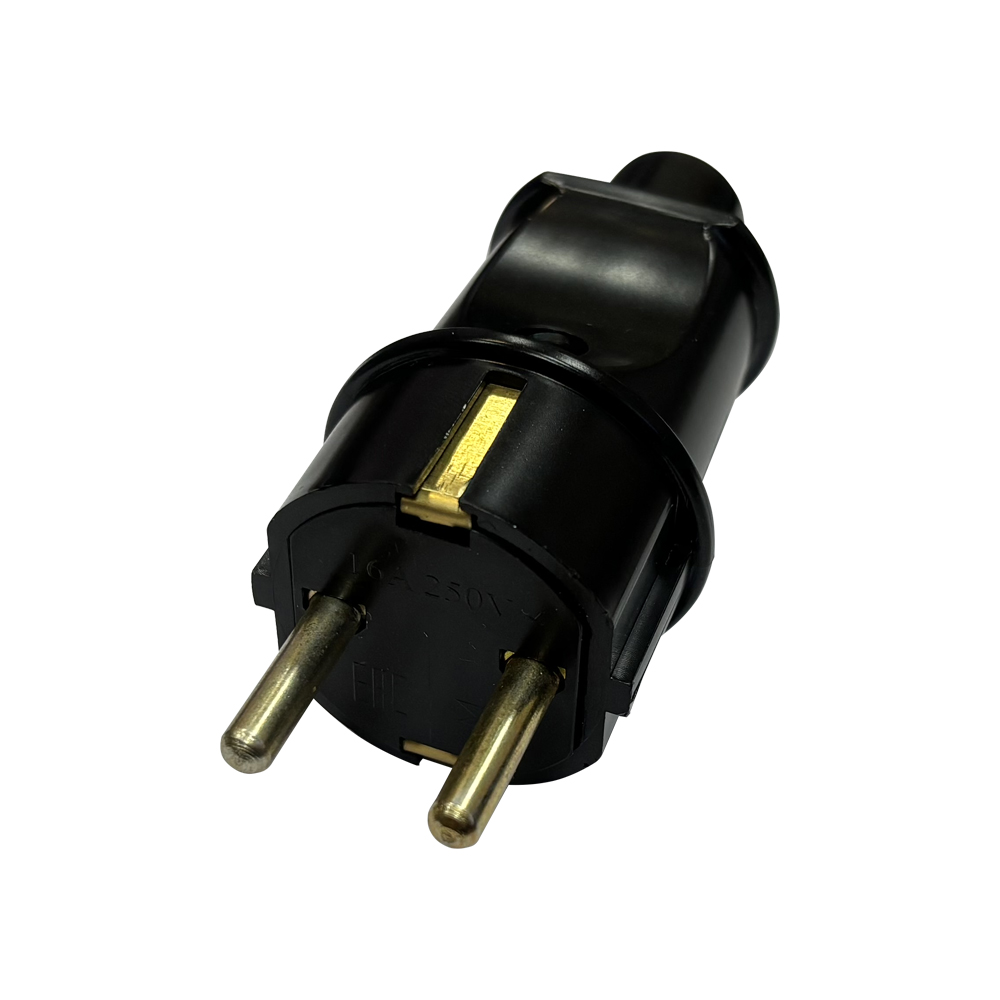 Вилка прямая, без заземления, 16А, черная, 250В, Амбидекстр В16-006