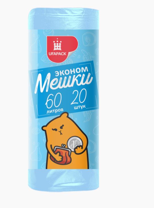 Пакеты для мусора ПНД "Уфа ПАК" Эконом 60 л. 20 шт. синие, р. 58x68см, 6мкм