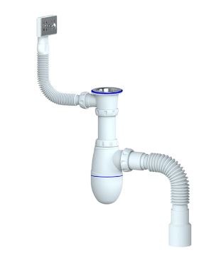 Сифон для мойки/умывал. 1 1/2"х40мм UNICORN А420 без выпуска,с гофрой 40*40*50, с переходн.40*32