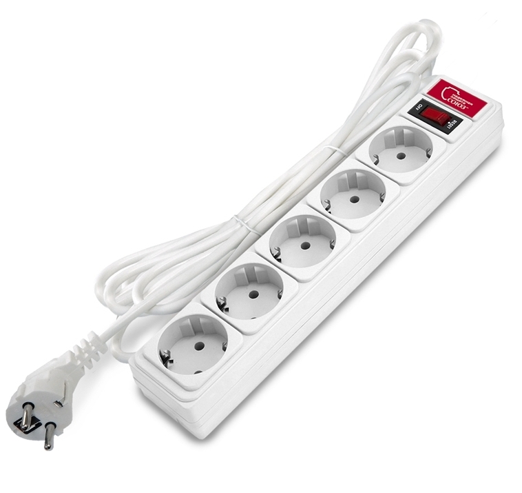 Сетевой фильтр 5гн, 5м, ПВС 3*0,75мм², с зазем., с выключ., белый, СОЮЗ
