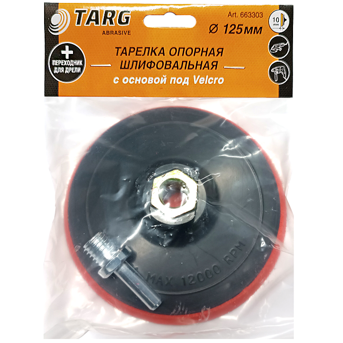 Насадка для шлифования 125мм для УШМ и дрели, толщина, 10мм Targ