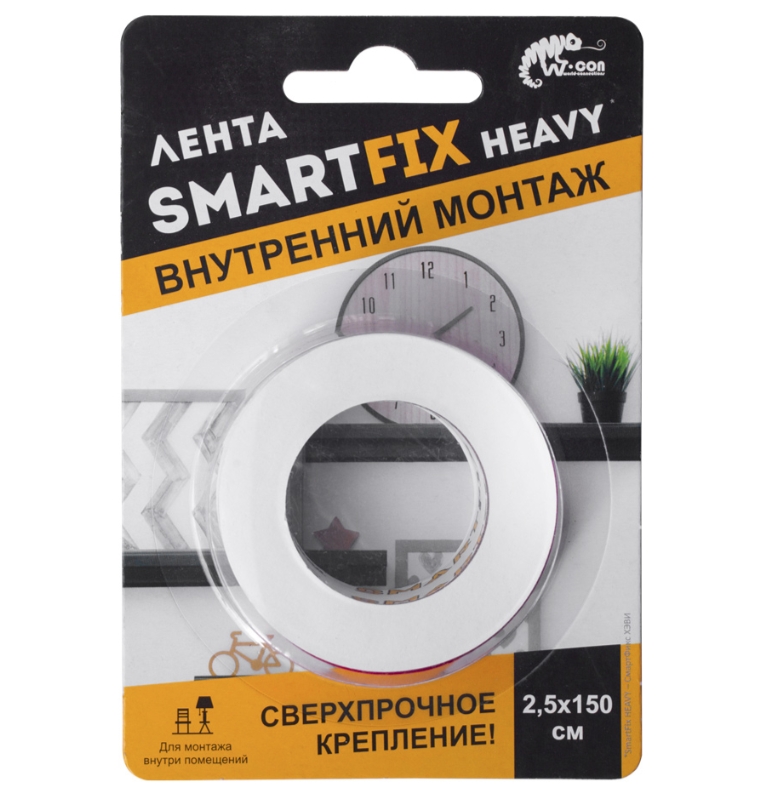 Лента клеящая 2-х сторонняя 25мм* 1.5м прозрач. сверхсильн.для внутр.монт. W-con SmartFix HEAVY