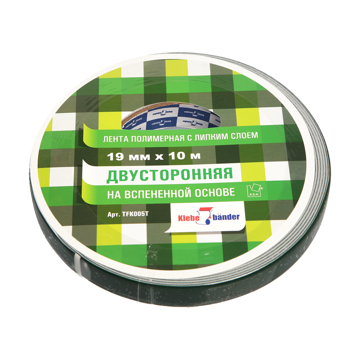 Лента клеящая 2-х сторонняя 19мм*10м на вспененной основе, Klebebander