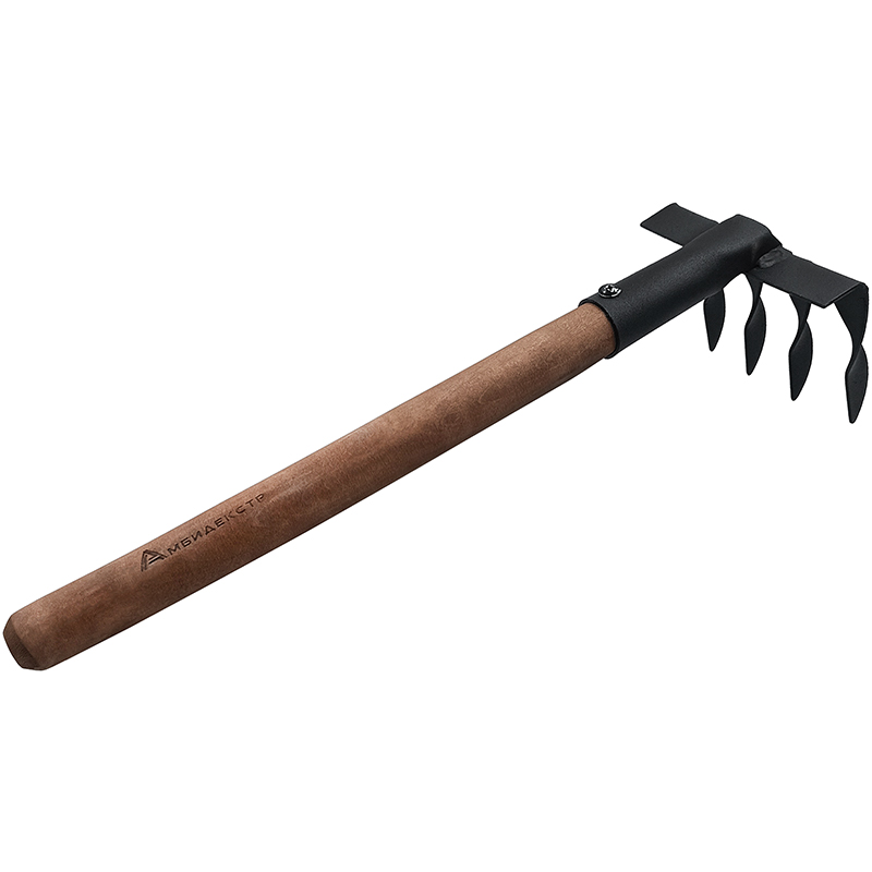Грабли малые витые зубья Амбидекстр ГВ-4 сталь 2.0мм, с деревянной ручкой 350мм