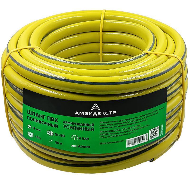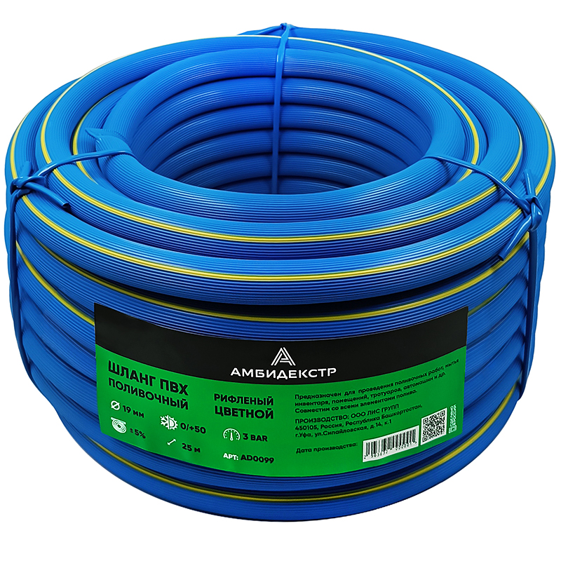 Шланг поливочный ПВХ Амбидекстр 3/4" (19мм) 3-слойный, армир, усилен, толщ.стенки 2.8мм (25м)