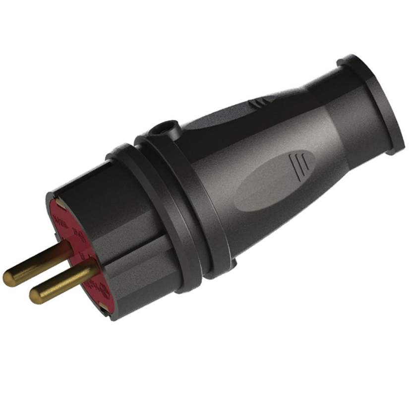 Вилка прямая, с заземлением, 16А, (каучук) черная, IP44, Амбидекстр