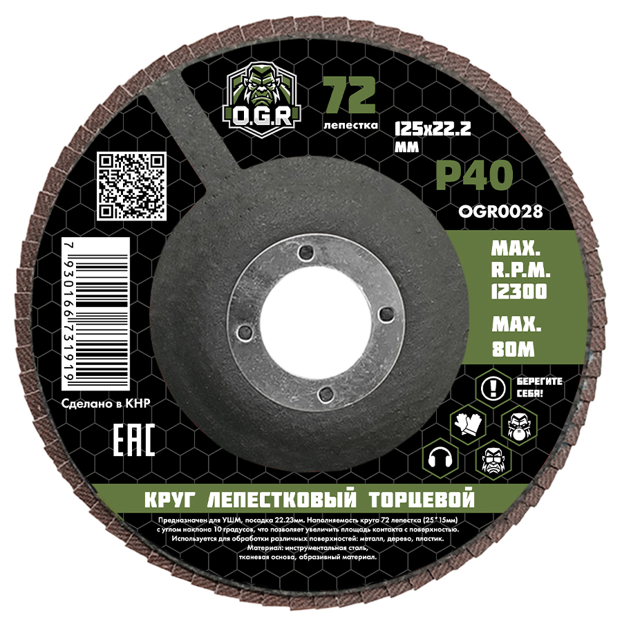 Диск лепестковый торцевой 125*22 Р 40 OGR