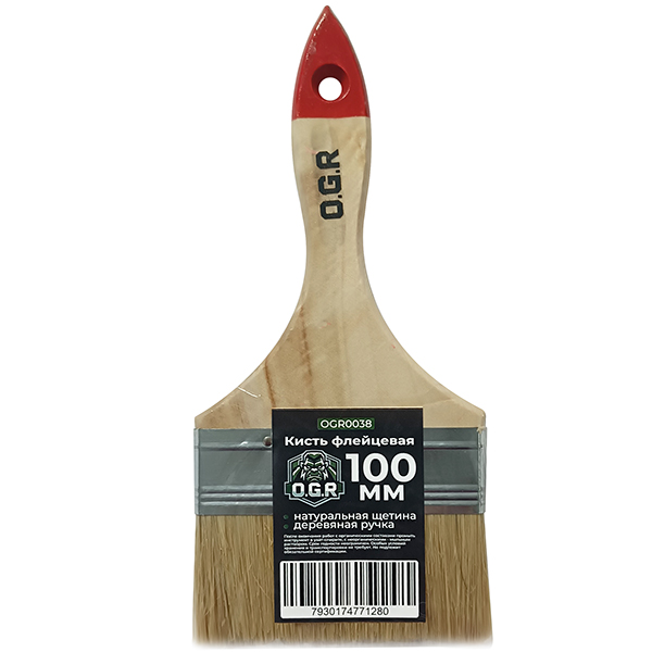 Кисть плоская 100мм OGR, деревянная ручка, натур. щетина