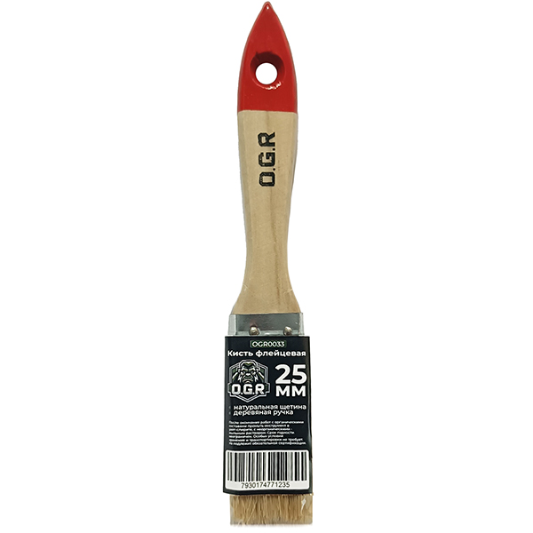 Кисть плоская 25мм OGR, деревянная ручка, натур. щетина