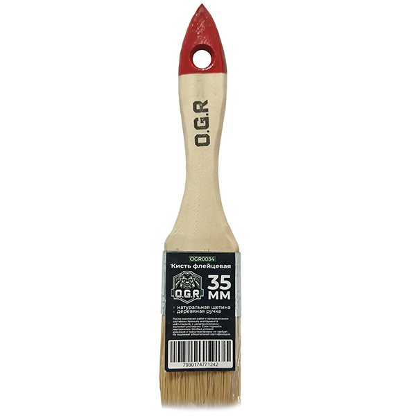 Кисть плоская 35мм OGR, деревянная ручка, натур. щетина