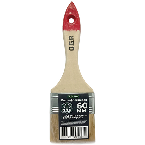 Кисть плоская 60мм OGR, деревянная ручка, натур. щетина