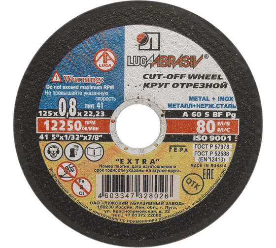 Диск отрезной по металлу 125*0,8*22 Луга А60 S BF 80 (14A БУ)