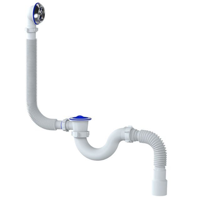 Сифон для ванны 1 1/2"х40мм UNICORN S32P, S-образный жёсткий, с переливом, с выпуском, с гофрой