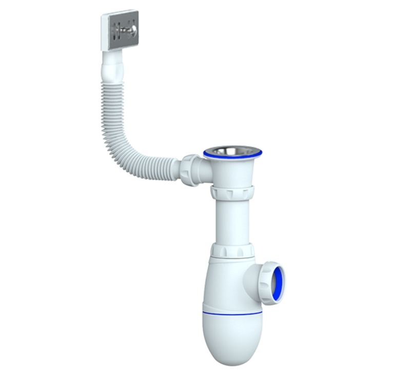 Сифон для мойки/умывал. 1 1/2"х40мм UNICORN А420 без выпуска,с гофрой 40*40*50, с переходн.40*32