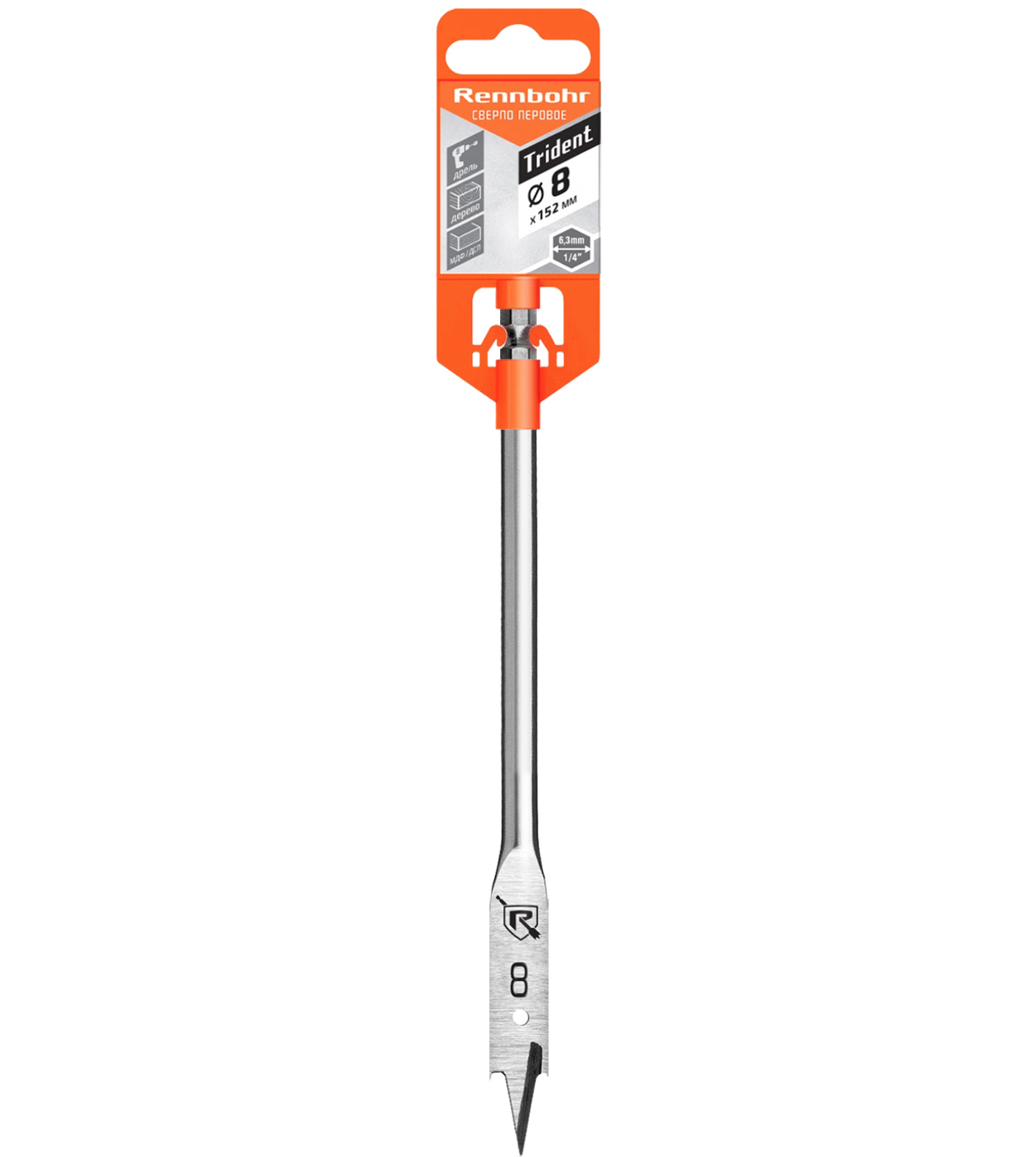 Сверло по дереву перовое 8*152мм Rennbohr
