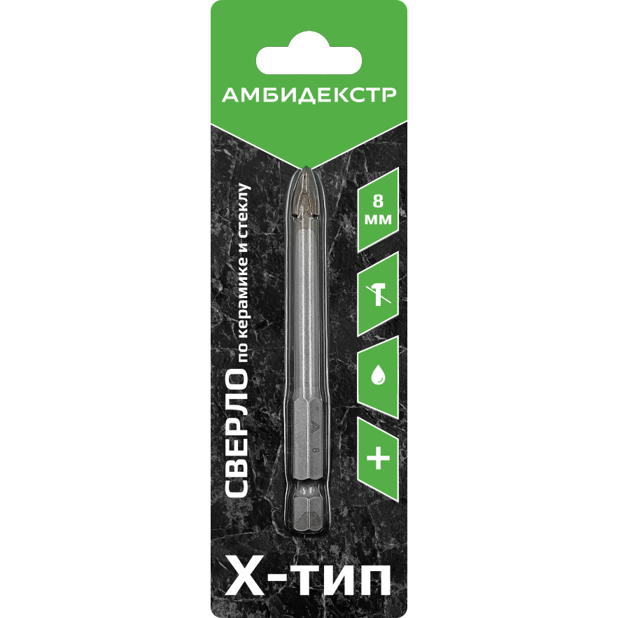 Сверло по керамике и стеклу Амбидекстр X-тип 8 мм, 83/50 мм