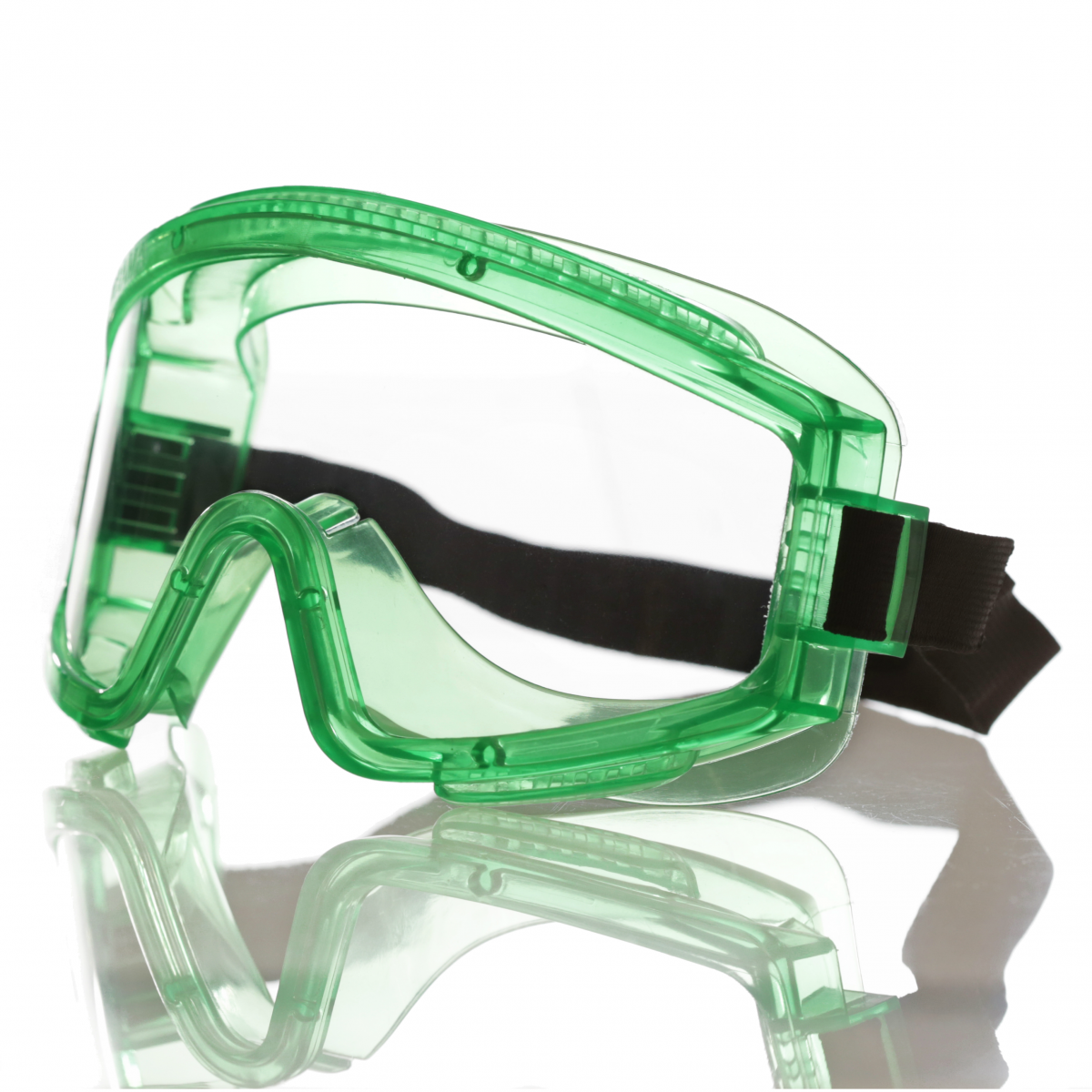 Очки с непрямой вентиляцией с панорамным защитным бесцветным стеклом с покрытием Абсолют. Мягкий корпус из ПВХ. Регулируемая наголовная лента. Обеспечивают защиту глаз от абразива, капель жидкостей (в т.ч. химических растворов), УФ-излучения, от механического повреждения высокоскоростными летящими частицами (кроме мелких частиц и пыли).