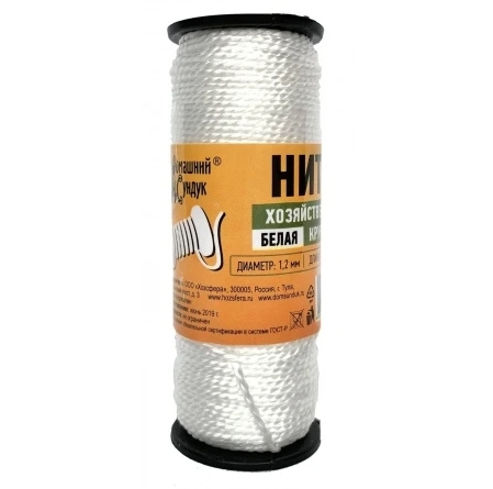 Нить на катушке, хозяйственная, крученая 1.2мм* 50м, белая "Домашний Сундук"