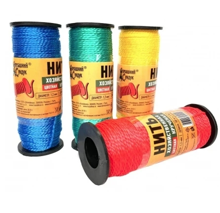 Нить на катушке, хозяйственная, крученая 1.2мм* 50м, цветная "Домашний Сундук"