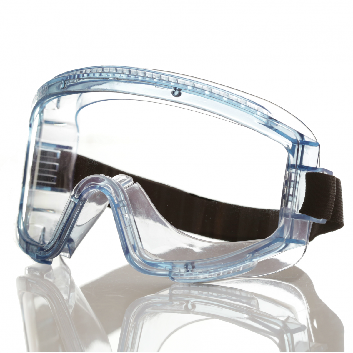 Очки с непрямой вентиляцией с панорамным защитным бесцветным стеклом из поликарбоната (РС super) с незапотевающим покрытием изнутри, снаружи устойчивым к истиранию и царапанию.