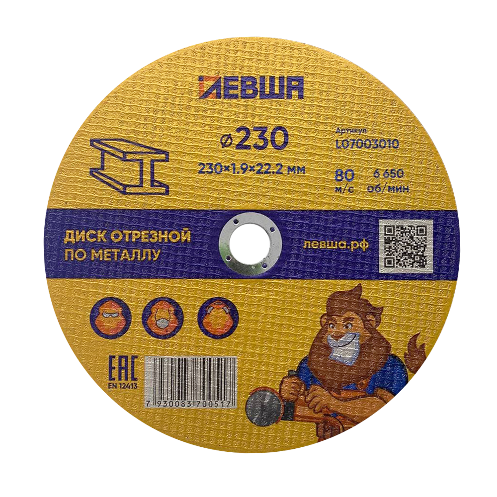 Диск отрезной по металлу 230*1,9*22 Левша