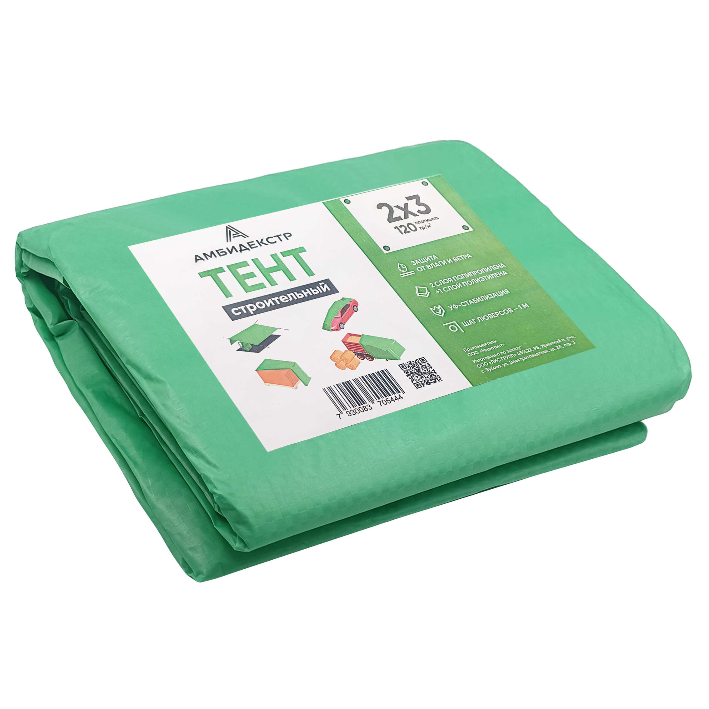 Тент (полог) строительный полипропиленовый 2*3м, люверс, плотность 120гр/м² Амбидекстр