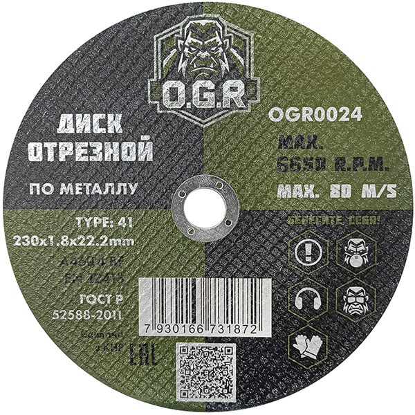 Диск отрезной по металлу 230*1,6*22 OGR