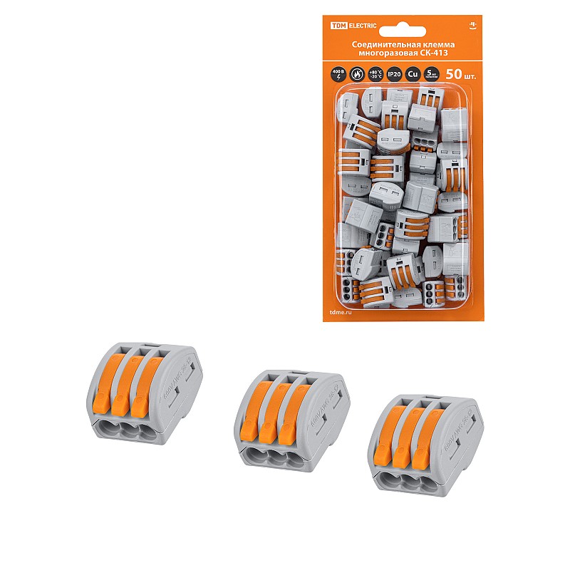 Клемма СМК 0.1-2.5мм2, СК-413 с рычагом 3 отверстия TDM