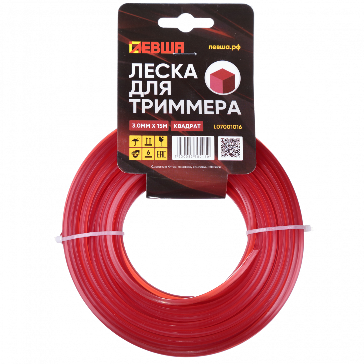 Леска для триммера 3.0мм*15м, квадрат ЛЕВША