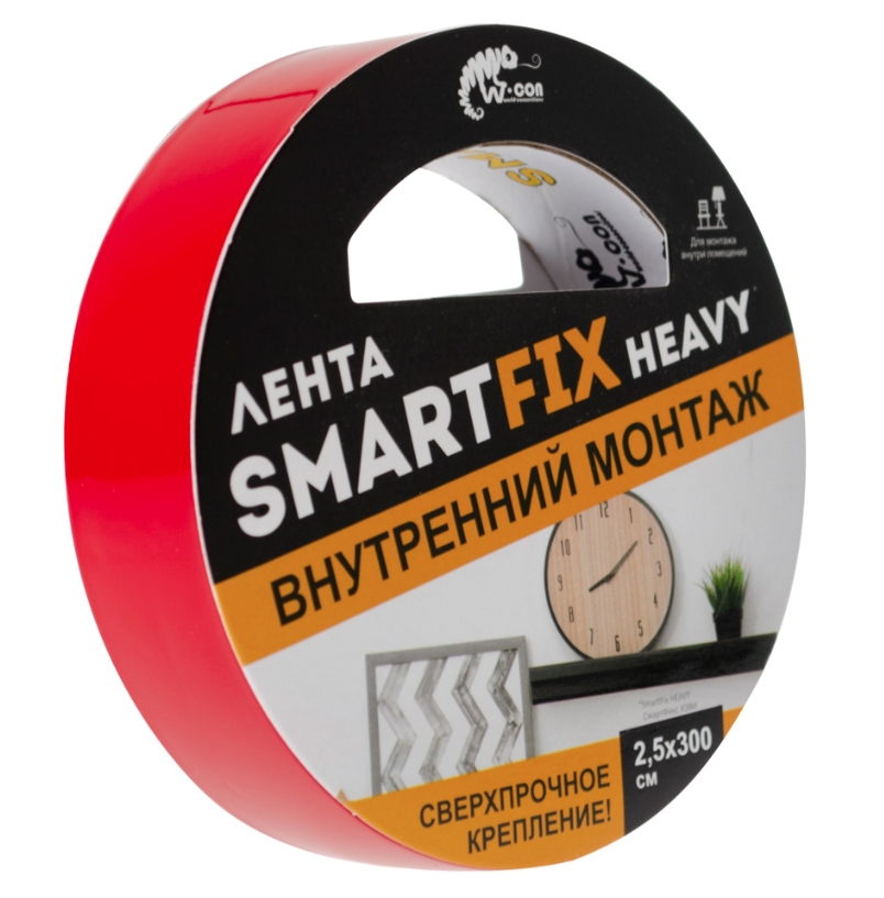 Лента клеящая 2-х сторонняя 25мм* 3м прозрач. сверхсильн.для внутр.монт. W-con SmartFix HEAVY