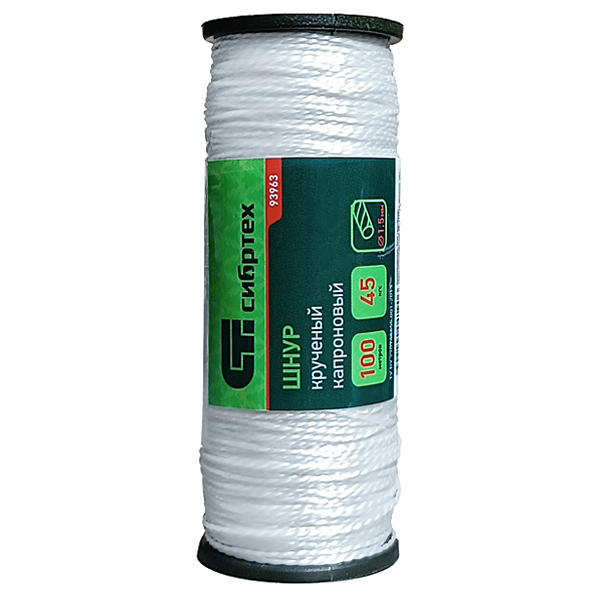 Нить капроновая на катушке 1,5мм*100м, белая, 45гкс, Сибртех