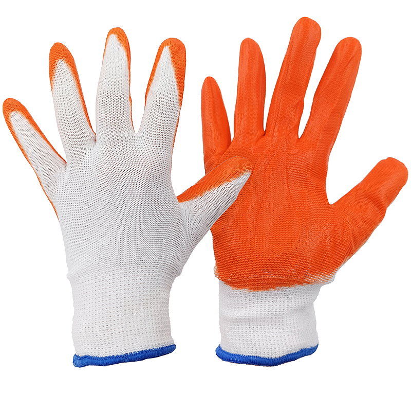 Перчатки КНР нейлоновые, бело-оранжевые/бело-синие