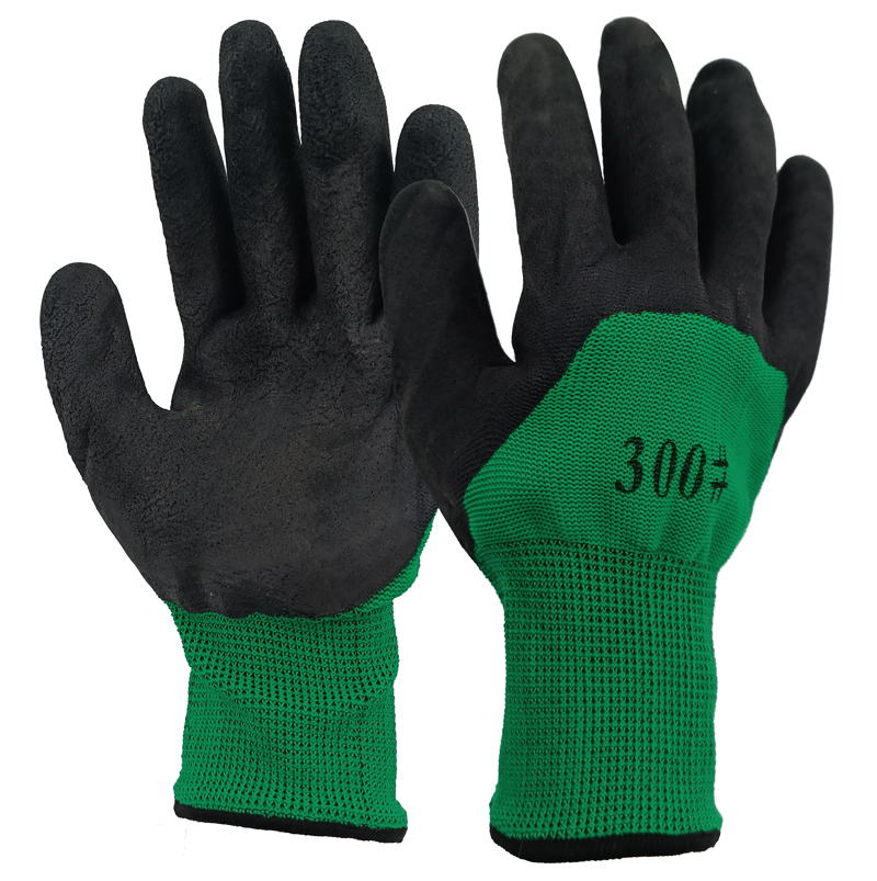 Перчатки КНР нейлон, нитрил черно-зеленые, полный облив, 40гр