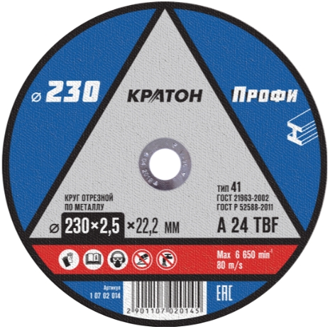 Диск отрезной по металлу 230*2,5*22 Кратон A24 TBF