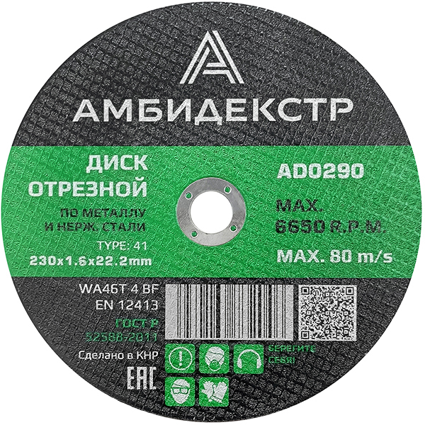 Диск отрезной по металлу 230*1,6*22 Амбидекстр