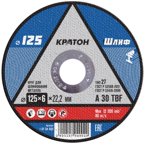 Диск зачистной по металлу 125*6*22 Кратон A30 TBF