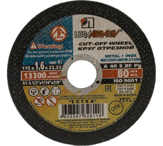 Диск отрезной по металлу 115*1,6*22 Луга А40