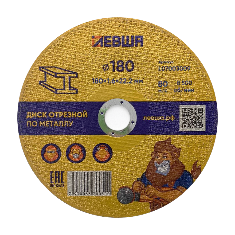 Диск отрезной по металлу 180*1,6*22 Левша